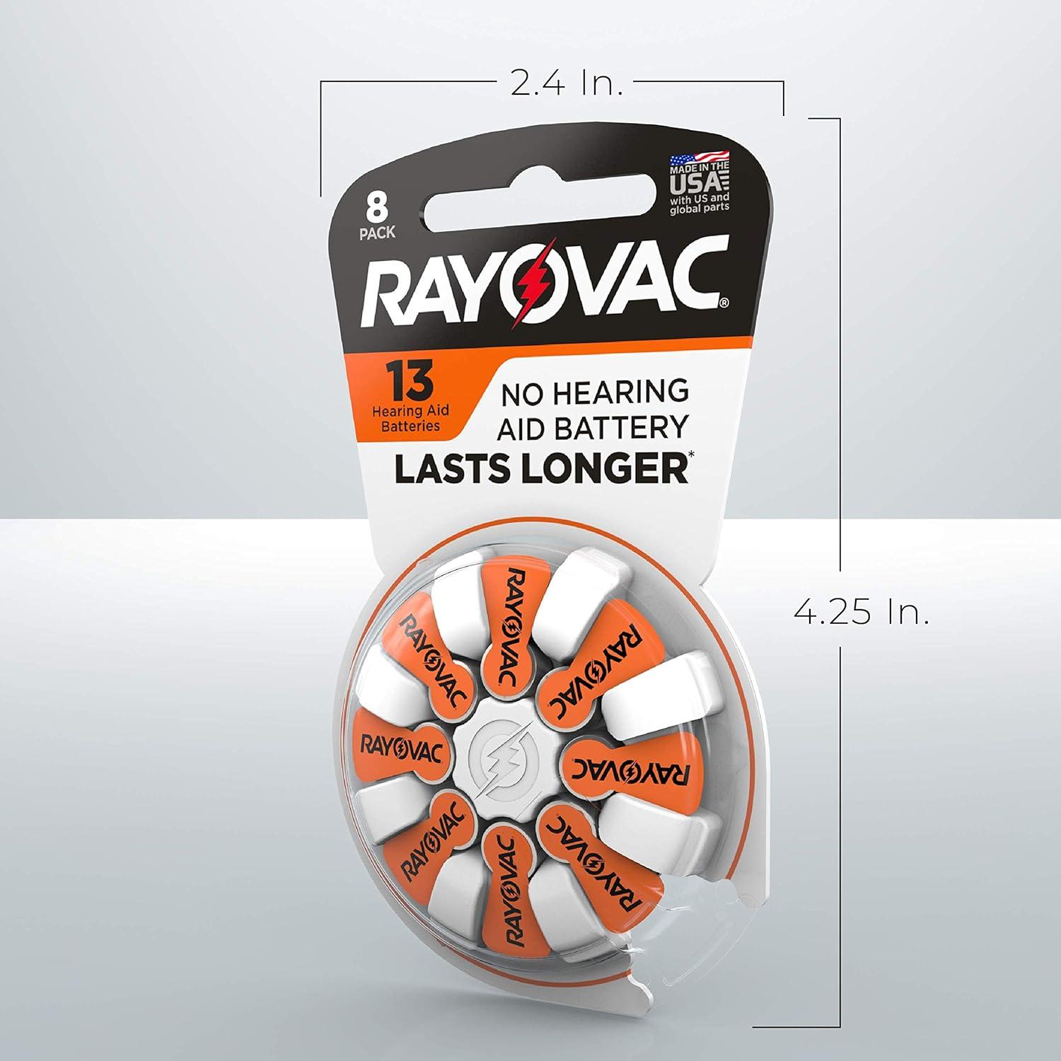 Rayovac size 13 hearing aid batteries hold power for up to 4 years in storage