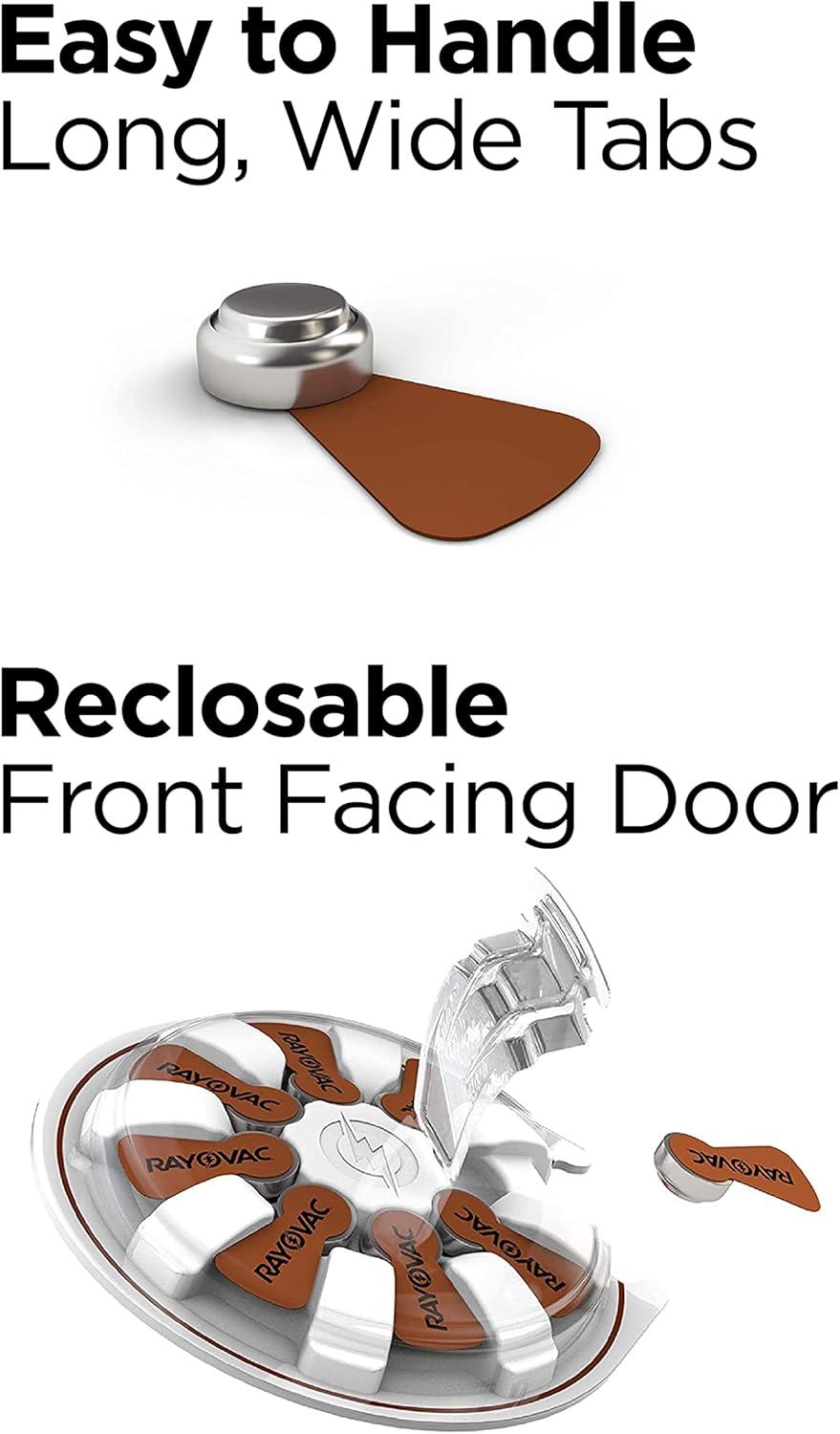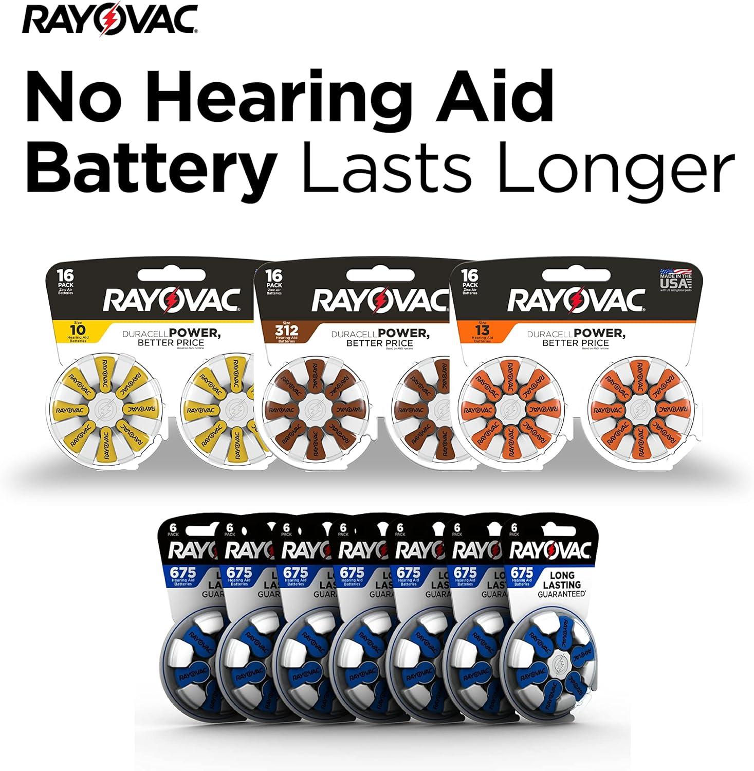 Duracell hearing power, budget friendly price. Rayovac Hearing Aid Batteries are formulated to provide quality performance and deliver power when you need it. This long-lasting formula provides consistent, high-quality performance throughout the life of the battery and is ideal for high-use devices and features like streaming video, audio and phone calls. Rayovac Hearing Aid Batteries are now packaged in certified Child Resistant packaging. While 100% child resistant in testing, the packs are senior-considerate* and can be easily opened by users in seconds, using scissors. *Senior Adult Test, Sequential Child Test, CPSC 16 CFR PART 1700.20, August 2023, Prepared by Child Related Research, Inc.